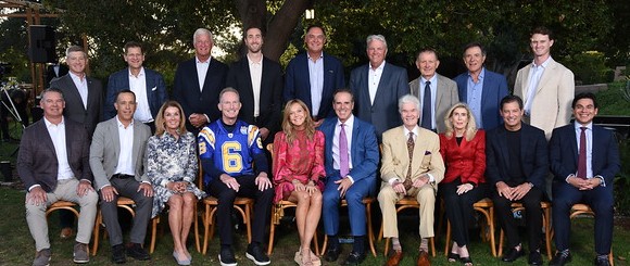 Proud former San Diego Chargers are crowned champions of Legacy Responds at The Farms. Pictured (left to right) Willie Buchanon, Hank Bauer, NFL Hall Of Famer Charlie Joiner, Pete Shaw, celebrating with Legacy Founder and tournament host, Rolf Benirschke.